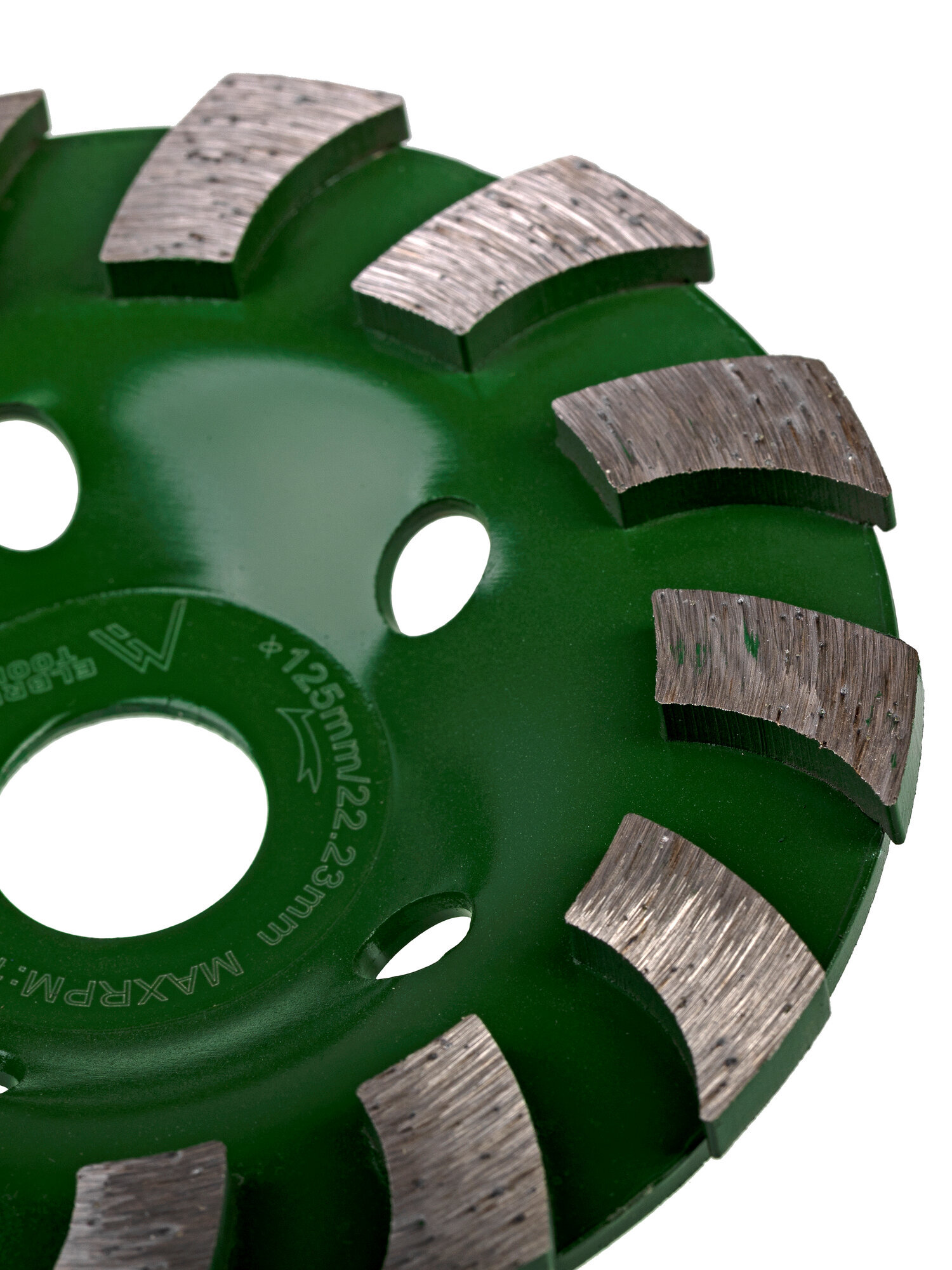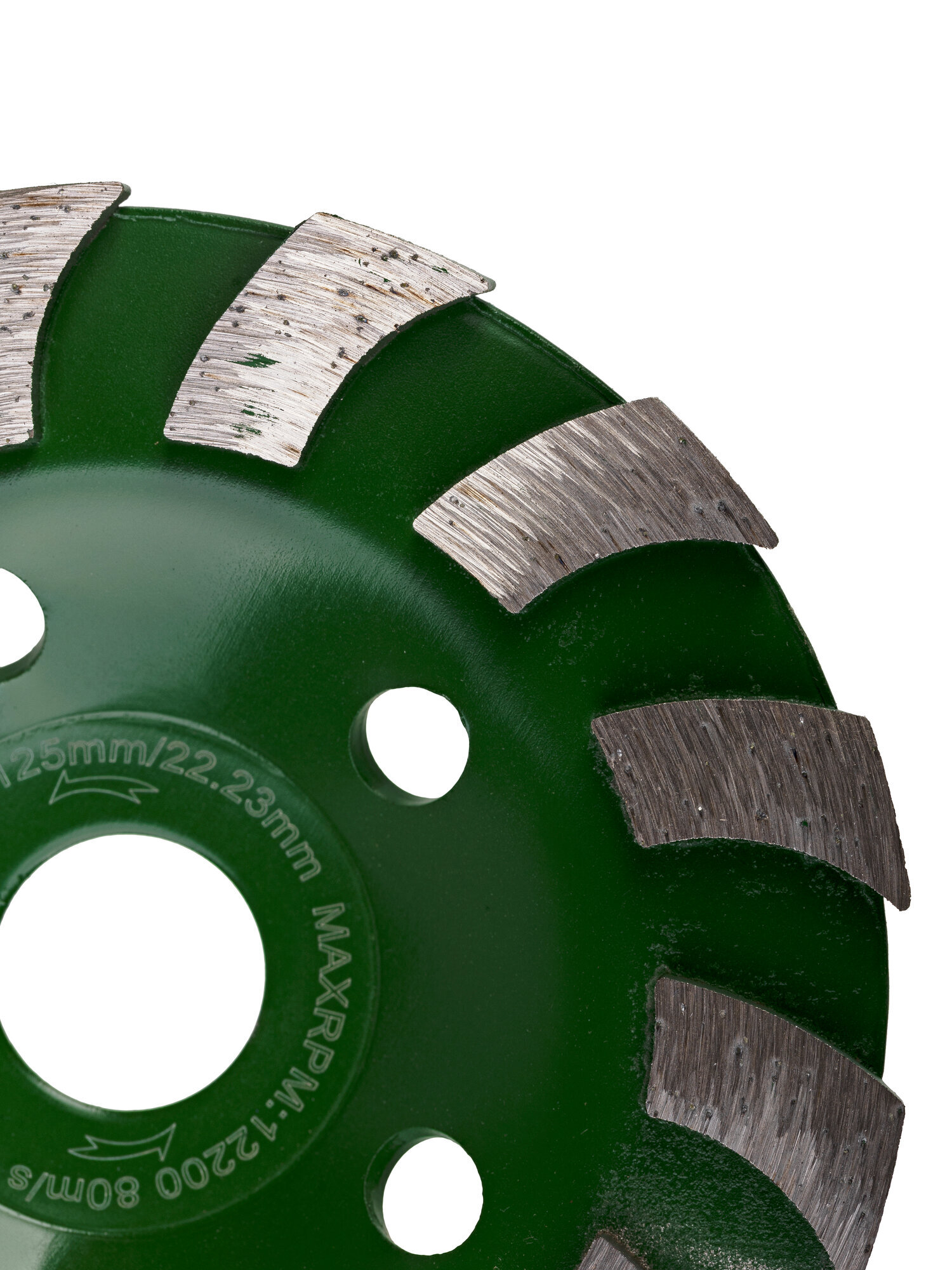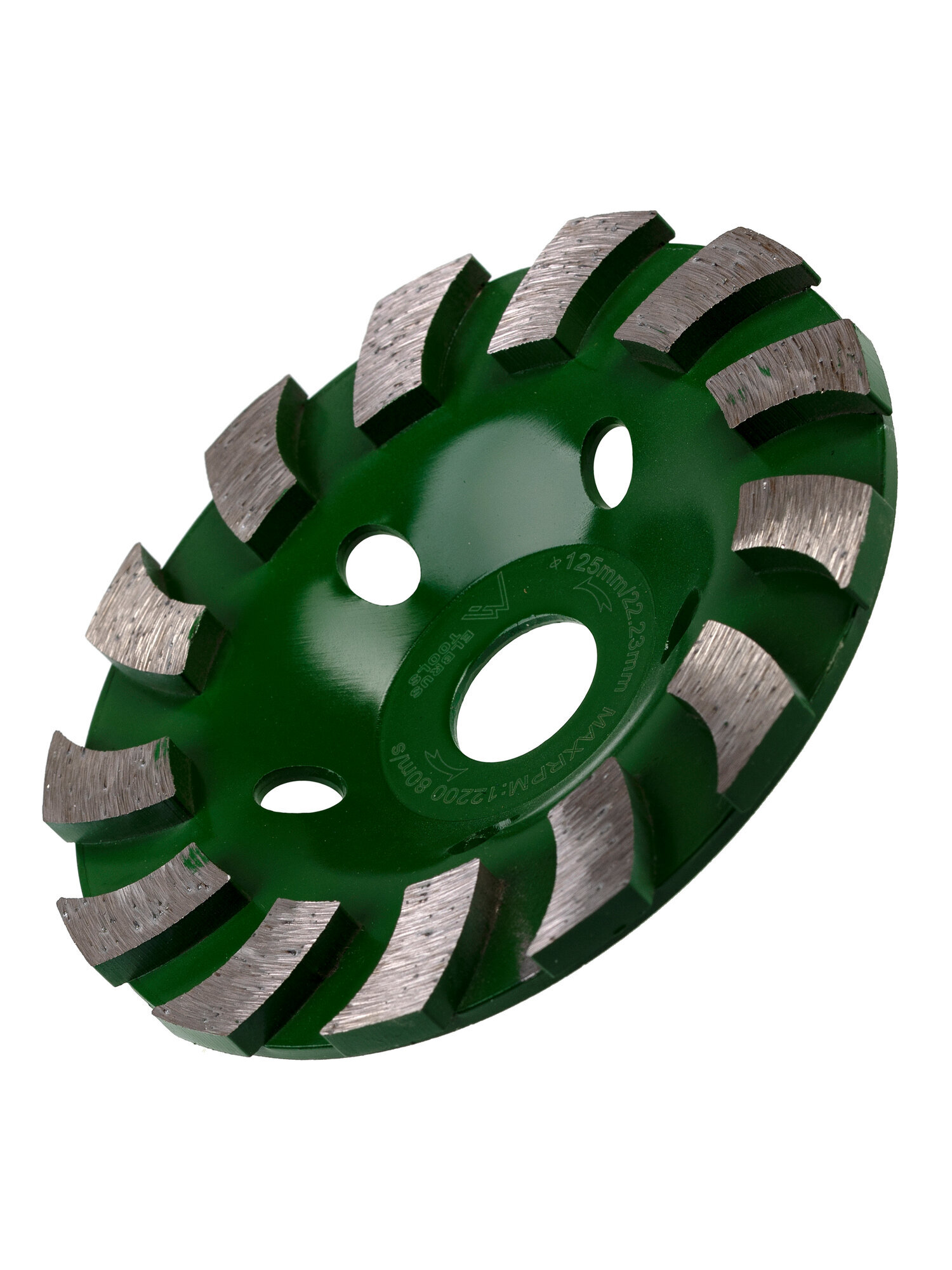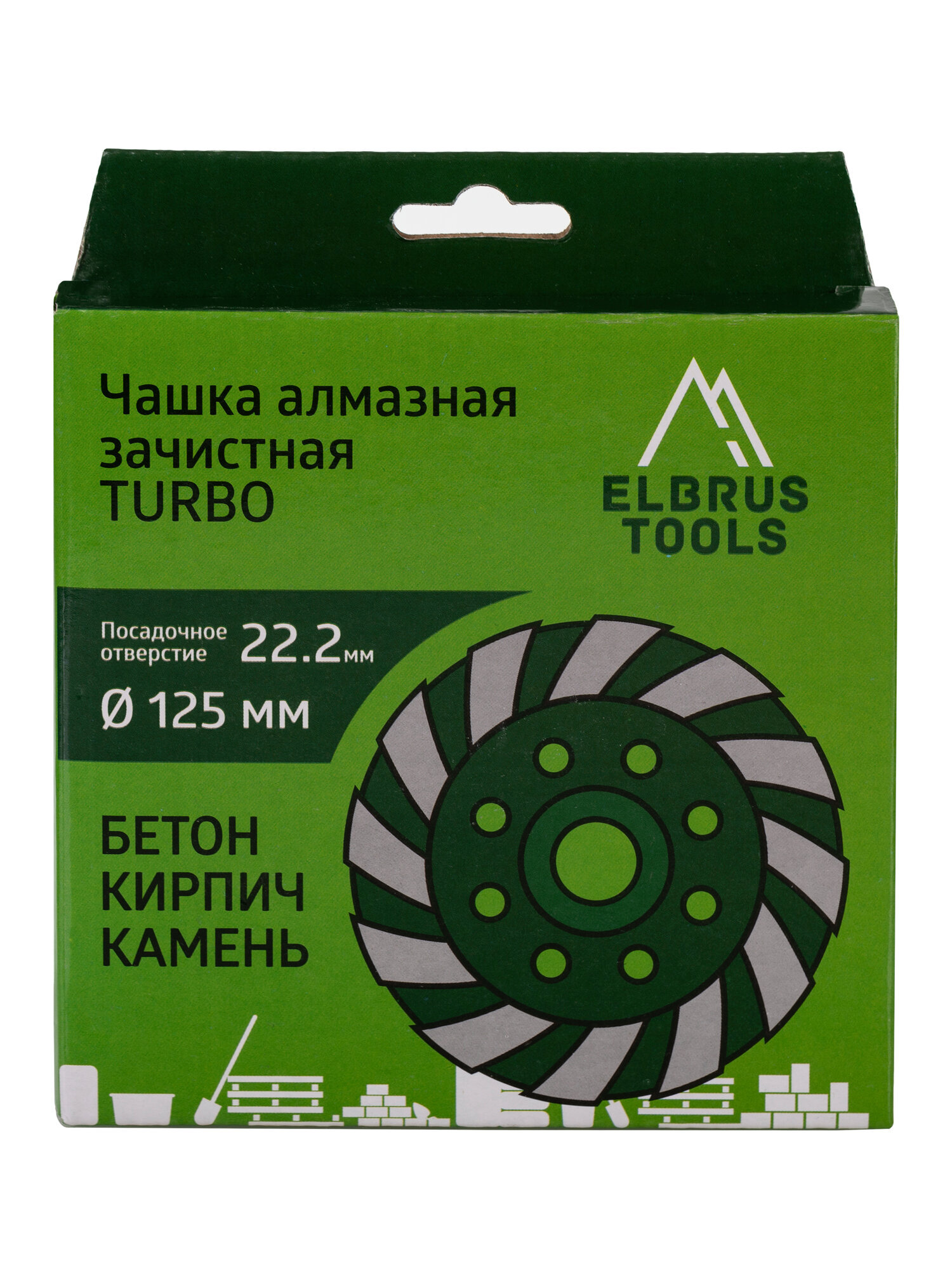 Чашка алмазная зачистная ELBRUS TOOLS TURBO, 125мм - незаменимый инструмент для профессионалов и любителей, работающих с твердыми материалами. Она предназначена для эффективной зачистки бетона, кирпича, искусственного и натурального камня, обеспечивая быстрый и качественный результат. Алмазное напыление придает высокую прочность чашке и гарантирует долгий срок службы и устойчивость к износу. Турбированная рабочая поверхность усиливает качественную зачистку и выравнивание обрабатываемого материала. Диаметр чашки 125 мм (с посадочным отверстием 22,2мм) - универсален, подойдет практически к любой углошлифовальной машине и позволяет выполнять работы на участках различной площади. Зачистная чашка Эльбрус Тулз с вкраплением алмазов - ваш надежный помощник в строительстве, ремонте и отделочных работах. Благодарим Вас за выбор Эльбрус Тулс!