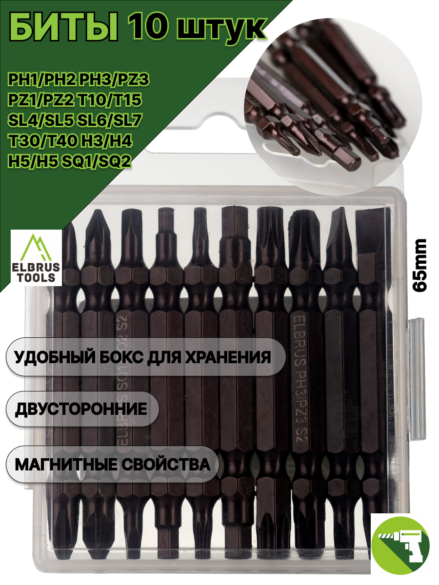 Набор бит магнитных для шуруповерта ELBRUS TOOLS (10 шт) – это незаменимый помощник для любого мастера и домашнего умельца. Набор включает в себя 10 бит различных типов, изготовленных из высококачественной стали, что гарантирует их прочность и долговечность. Магнитный наконечник каждой биты обеспечивает надежное их удержание в дрели или шуруповерте, что упрощает работу и предотвращает их выпадение. Компактный кейс для хранения позволяет удобно хранить и транспортировать биты, исключая их потерю. Этот набор станет отличным дополнением к вашему инструментальному набору и поможет вам справиться с любыми задачами по ремонту и сборке.
