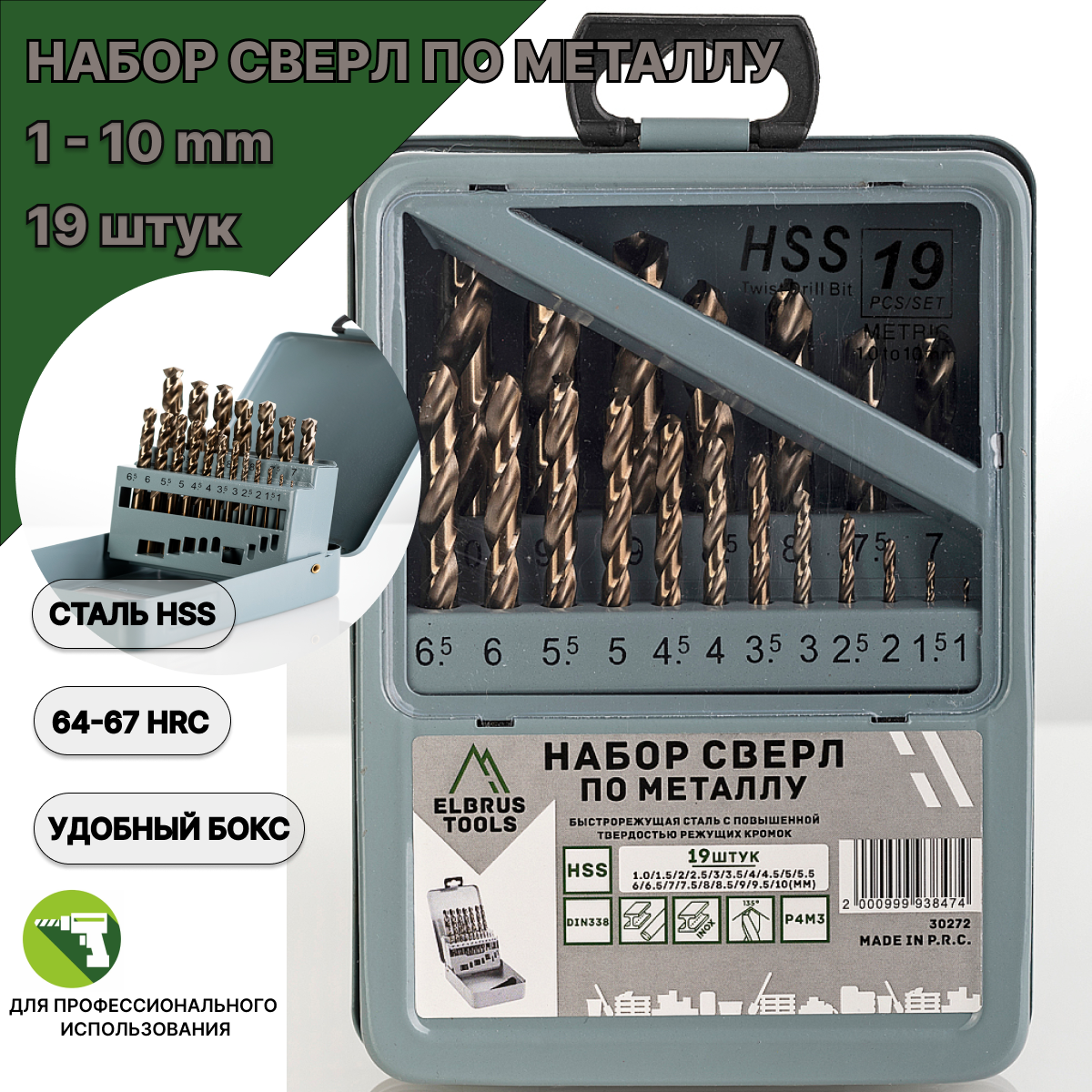Набор сверл ELBRUS TOOLS (Эльбрус Тулз) предназначен для сверления в металле. Сверла изготовлены из быстрорежущей высококачественной стали марки 4341 (что соответствует стандарту Р4М3). Твердость режущих кромок 64–67HRС. Внешняя поверхность обработана полированием, что обеспечивает большую точность размера. Поставляется в удобной металлической коробке для хранения