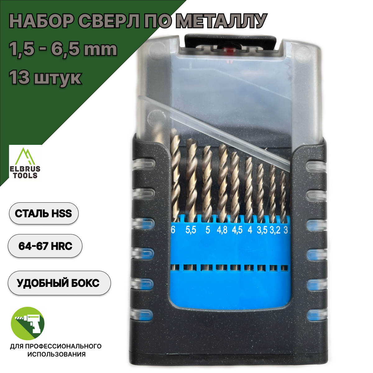 Набор сверл ELBRUS TOOLS предназначен для сверления в металле. Сверла изготовлены из быстрорежущей высококачественной стали марки 4341 (что соответствует стандарту Р4М3). Твердость режущих кромок 64–67HRС. Внешняя поверхность обработана полированием, что обеспечивает большую точность размера. Поставляется в удобной пластиковой коробке для хранения. Вы получаете прекрасный набор сверл, который компактно поместится в любое пространство, где хранятся инструменты.