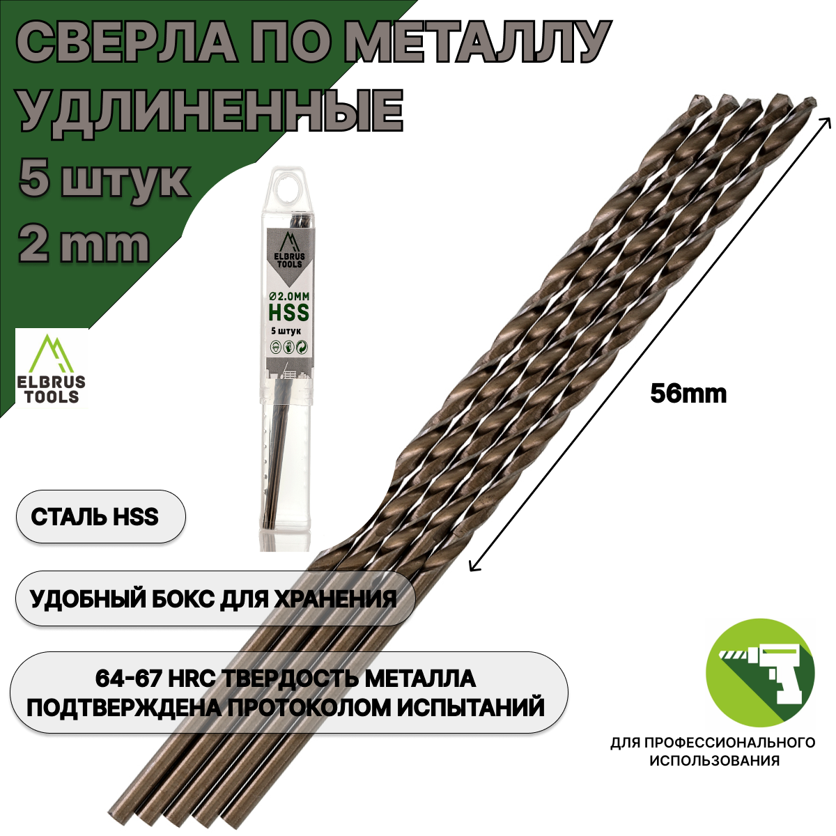 Общая длина сверла - 85мм, рабочая длина - 56мм, DIN - 340. Сверло российского брэнда ELBRUS TOOLS предназначено для сверления в металле. Марка и твердость металла подтверждены протоколом испытаний российской специализированной лаборатории (№МЭХТ-12012024-1 от 12.01.2024 г.). Сверло по металлу изготовлено из быстрорежущей высококачественной стали HSS. Твердость режущих кромок 64–67 HRС, что является отличным показателем износостойкости сверла! Внешняя поверхность обработана полированием, что обеспечивает большую точность размера. Кончик сверла имеет двойную заточку, это позволяет засверливаться без предварительного кернения. Поставляется в удобной пластиковой коробке для хранения. Вы получаете прекрасный набор сверл, который компактно поместится в любое пространство, где хранятся инструменты. Тип хвостовика - цилиндрический. Удлиненное сверло по металлу подходит для нержавеющей стали и для профессионального пользования.