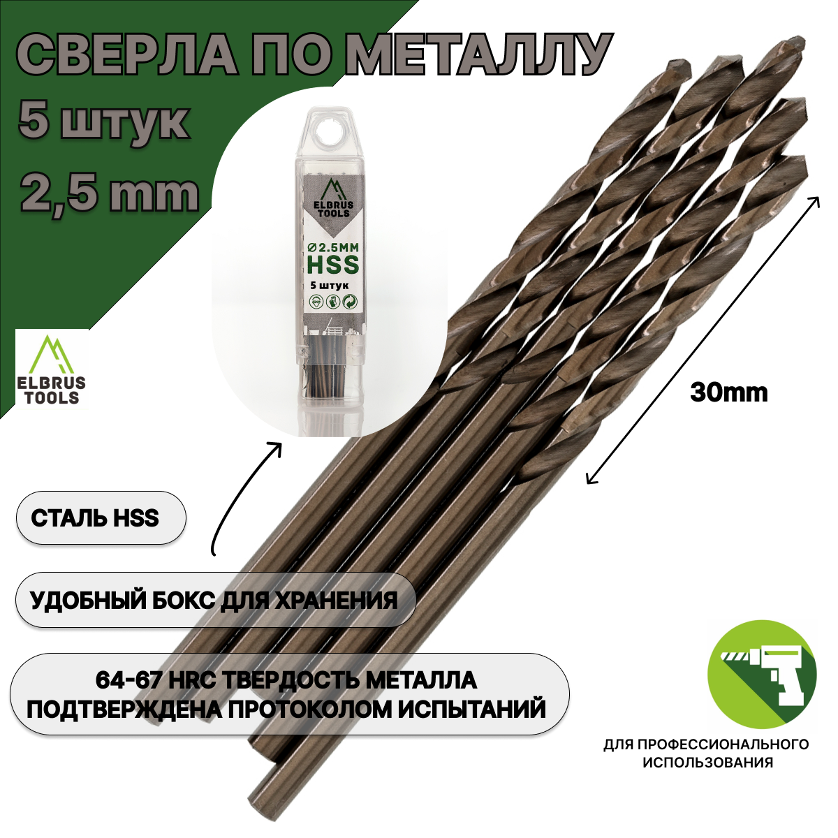 Общая длина сверла - 57мм, рабочая длина - 30мм, DIN - 338. Сверло российского брэнда ELBRUS TOOLS предназначено для сверления в металле. Марка и твердость металла подтверждены протоколом испытаний российской специализированной лаборатории (№МЭХТ-12012024-1 от 12.01.2024 г.). Сверло по металлу изготовлено из быстрорежущей высококачественной стали HSS. Твердость режущих кромок 64–67 HRС, что является отличным показателем износостойкости сверла! Внешняя поверхность обработана полированием, что обеспечивает большую точность размера. Кончик сверла имеет двойную заточку, это позволяет засверливаться без предварительного кернения. Поставляется в удобной пластиковой коробке для хранения. Вы получаете прекрасный набор сверл, который компактно поместится в любое пространство, где хранятся инструменты. Тип хвостовика - цилиндрический. Подходит для нержавеющей стали и для профессионального пользования.